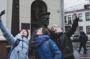 Жители Минска 19 ноября целовали и обнимали скульптуру городового. Так они решили выразить свой протест против ее "особого статуса". Памятник установлен у здания МВД.