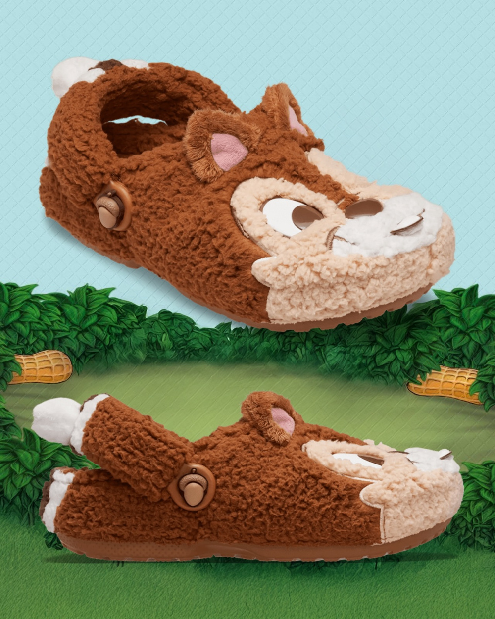 Американский бренд Crocs продолжает заигрывать с поп-культурой и ностальгией. На этот раз компания анонсировала необычную новинку - пушистые тапочки, вдохновленные культовыми персонажами Disney, бурундуками Чипом и Дейлом.