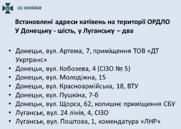 Служба безопасности Украины установила адреса пыточных на территории ОРДЛО.