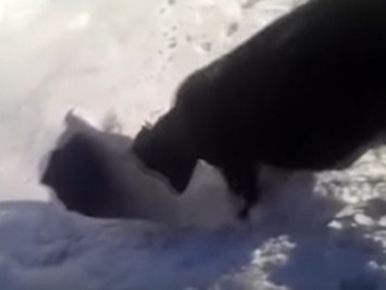 В сети появилось видео, на котором несколько коров спускаются под заснеженную землю и "исчезают"